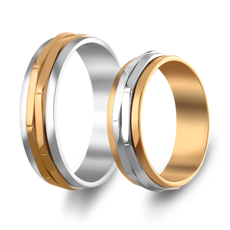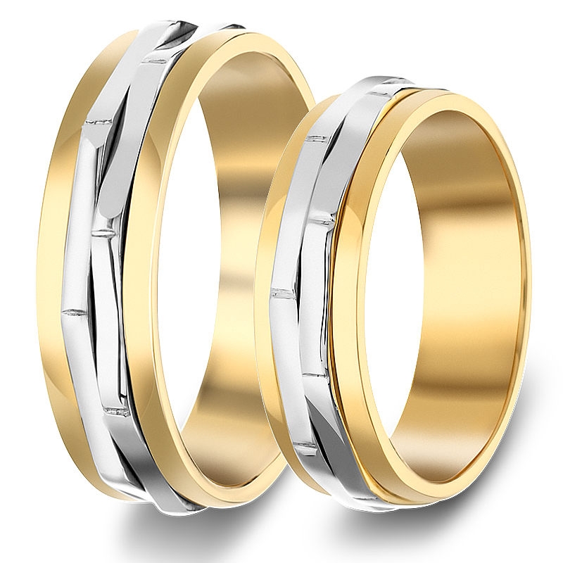 Βέρες γάμου δίχρωμες από κίτρινο και λευκό χρυσό 14 καρατίων.