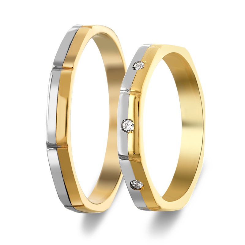 Βέρες γάμου δίχρωμες από κίτρινο και λευκό χρυσό 14 καρατίων με ζιρκόν στην γυναικεία.