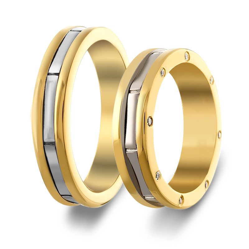 Βέρες γάμου δίχρωμες από κίτρινο και λευκό χρυσό 14 καρατίων με ζιρκόν στην γυναικεία.