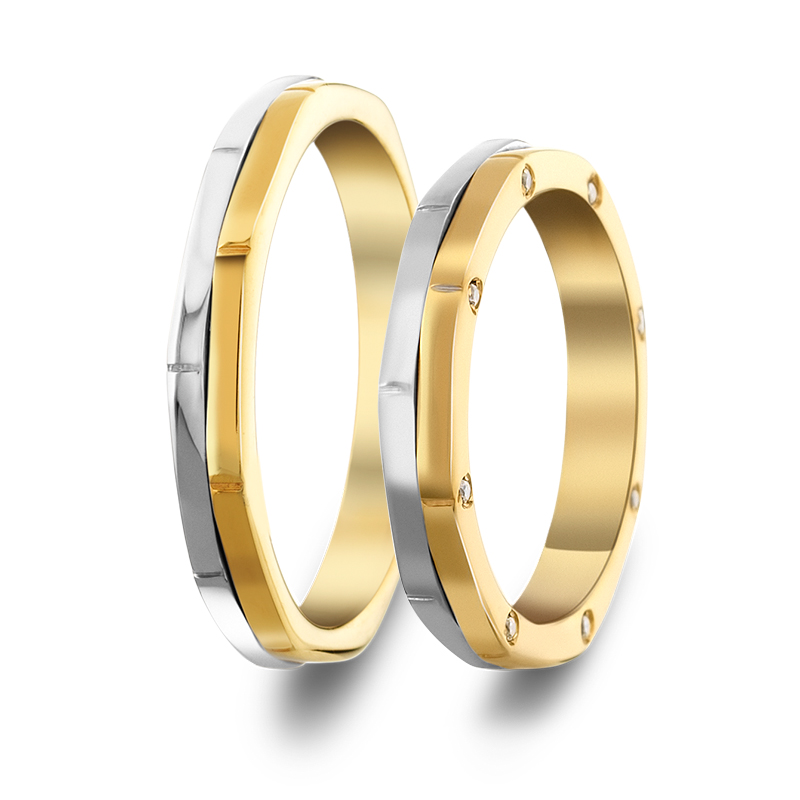 Βέρες γάμου δίχρωμες από κίτρινο και λευκό χρυσό 14 καρατίων με ζιρκόν στην γυναικεία.