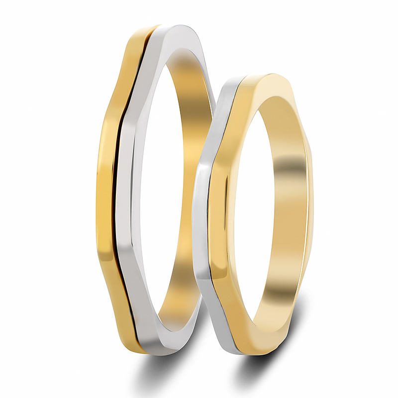Βέρες γάμου δίχρωμες από κίτρινο και λευκό χρυσό 14 καρατίων.