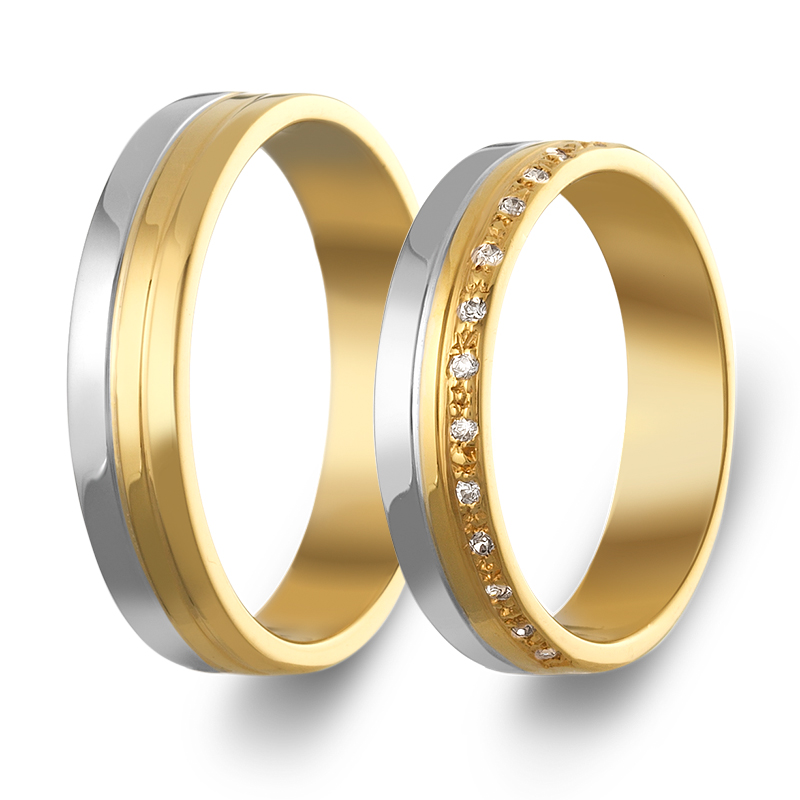 Βέρες γάμου δίχρωμες από κίτρινο και λευκό χρυσό 14 καρατίων με ζιρκόν στην γυναικεία.