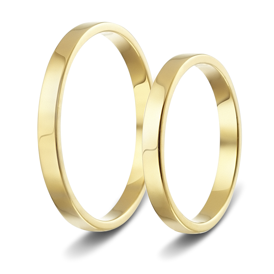 Βέρες γάμου μονόχρωμες από κίτρινο χρυσό 14 καρατίων.