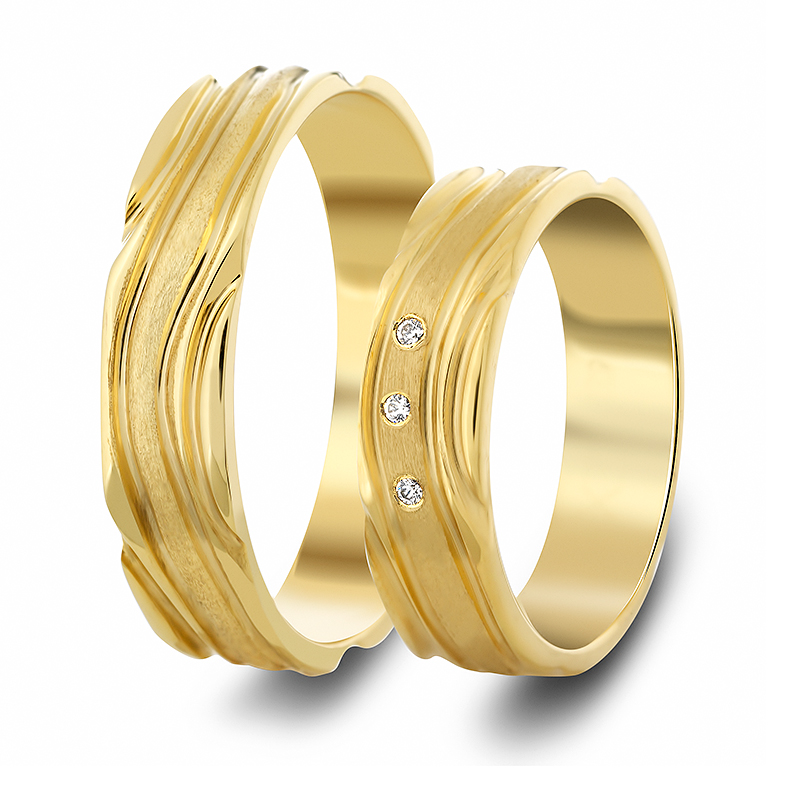 Βέρες γάμου μονόχρωμες από κίτρινο χρυσό 14 καρατίων με ζιρκόν στην γυναικεία.
