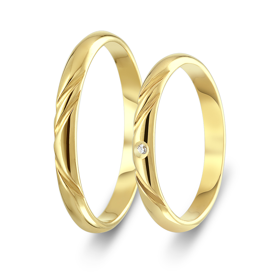 Βέρες γάμου Μονόχρωμες από κίτρινο χρυσό 14 καρατίων, με ζιρκόν στην γυναικεία.