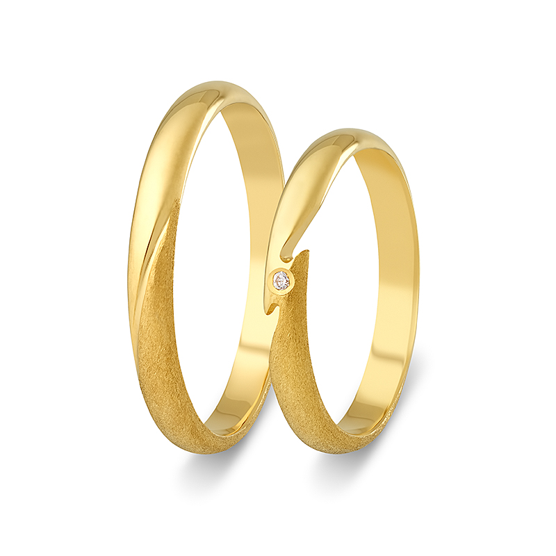 Βέρες γάμου Μονόχρωμες από κίτρινο χρυσό 14 καρατίων, με ζιρκόν στην γυναικεία.