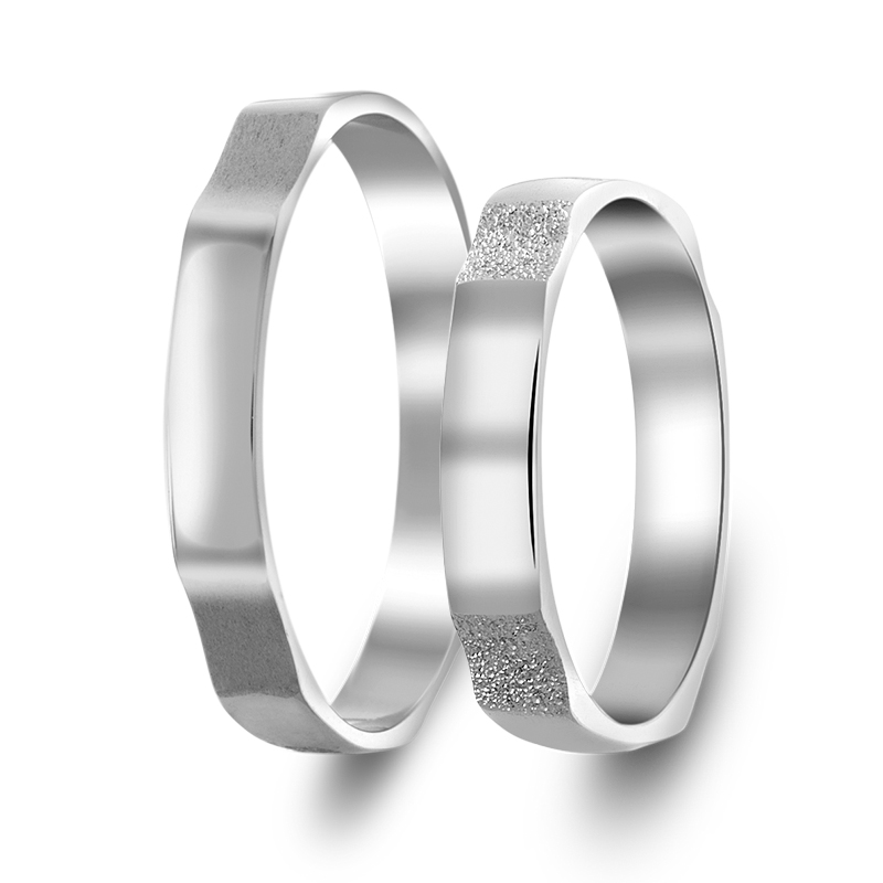 Βέρες γάμου μονόχρωμες από λευκό χρυσό 14 καρατίων.